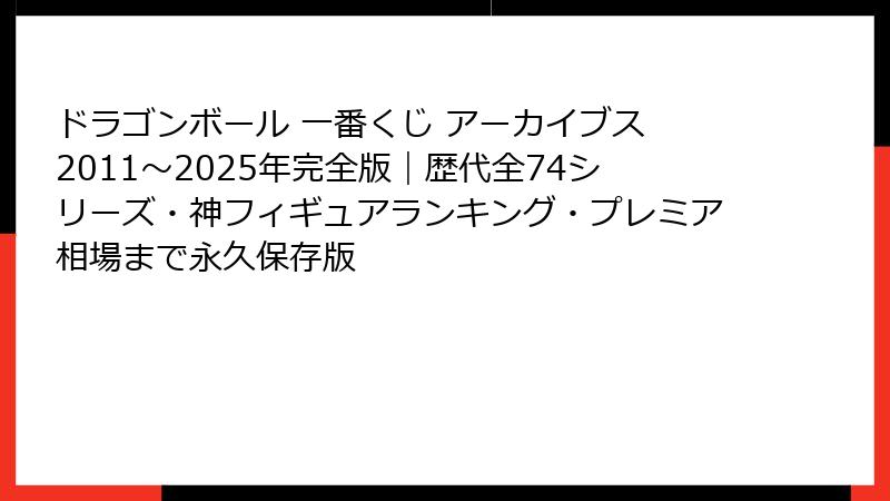 - ドラゴンボール一番くじアーカイブス完全版|歴代全シリーズ徹底まとめ(2011年~2025年最新まで)