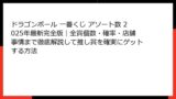 | 2025年11月 | 一番くじ ドラゴンボール 龍珠列伝 | 11月8日(土) | 780円 | 90本 | 全7種の神龍フィギュア | 毎年恒例 |