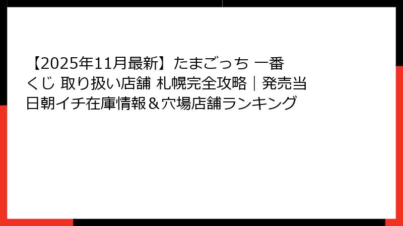 - 【2025年最新】たまごっち一番くじが札幌で買える全店舗一覧|発売日当日情報まとめ