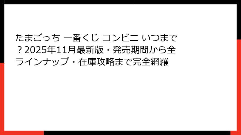 たまごっち一番くじ「Tamagotchi めちゃでかぬいぐるみ〜Happy Days〜」のコンビニ発売期間は、2025年11月22日(土)より順次発売開始、終了予定は2026年1月下旬頃ですが、これはあくまで「予定」です。