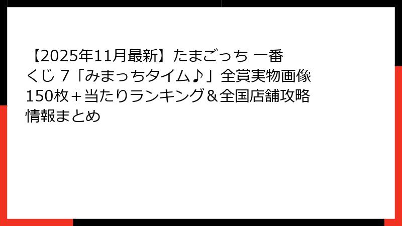 【2025年11月最新】たまごっち 一番くじ 7「みまっちタイム♪」全賞実物画像150枚+当たりランキング&全国店舗攻略情報まとめ
