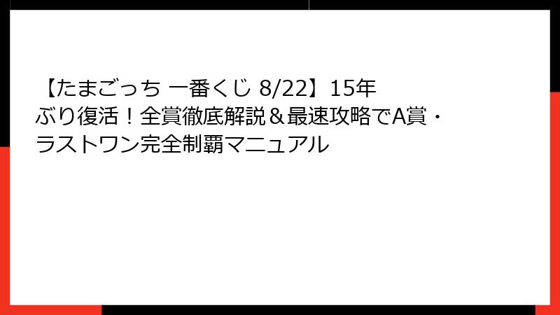 【たまごっち 一番くじ 8/22】15年ぶり復活!全賞徹底解説&最速攻略でA賞・ラストワン完全制覇マニュアル