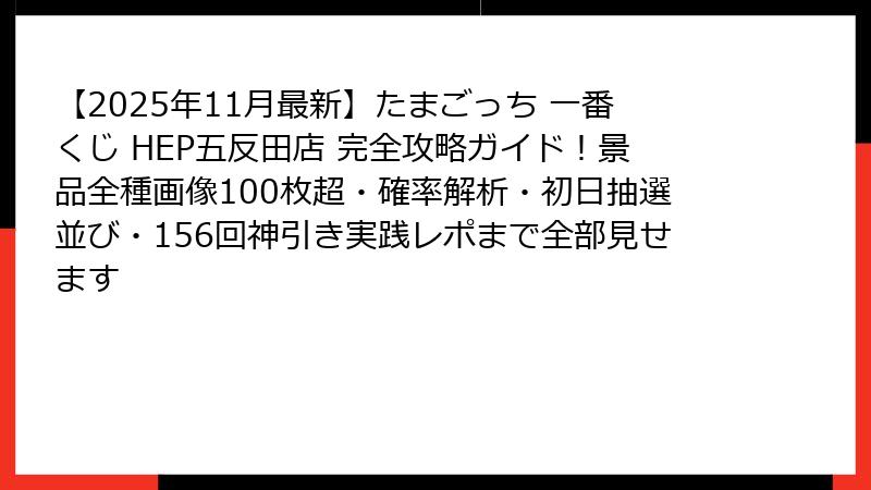- HEP五反田店 並び・抽選攻略完全マニュアル(2025年最新版)