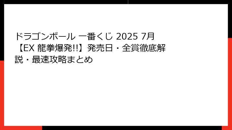 2025年7月、ドラゴンボールファン待望の超大型一番くじが登場します!その名も「一番くじ ドラゴンボール EX 龍拳爆発!!~悟空と神龍~」。