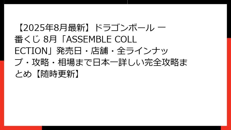- 一番くじ ドラゴンボールを絶対に当てたい人へ!2025年8月「ASSEMBLE COLLECTION」くじの確実な引き方・おすすめ店舗・全裏技を完全暴露【管理人15年分の極秘データ全部バラします】