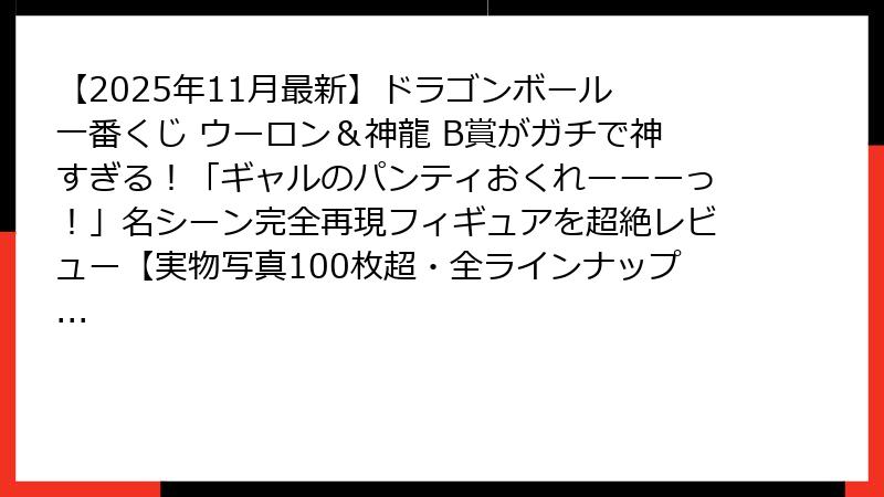 - 【2025年最新】ドラゴンボール一番くじ ウーロン&神龍 B賞が神すぎる!「ギャルのパンティおくれーっ!」名シーンの完全再現フィギュアが爆誕