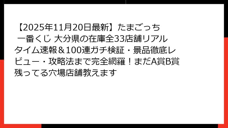 - 【2025年11月20日12時更新】大分市・別府・中津・佐伯まで!たまごっち一番くじ取り扱い全33店舗の最新在庫状況