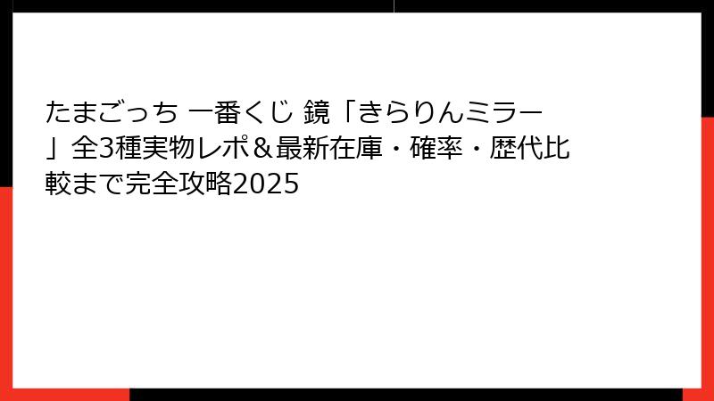 - 【2025年最新】たまごっち×一番くじに「鏡」が登場!全ラインナップ&当たり確率徹底解説