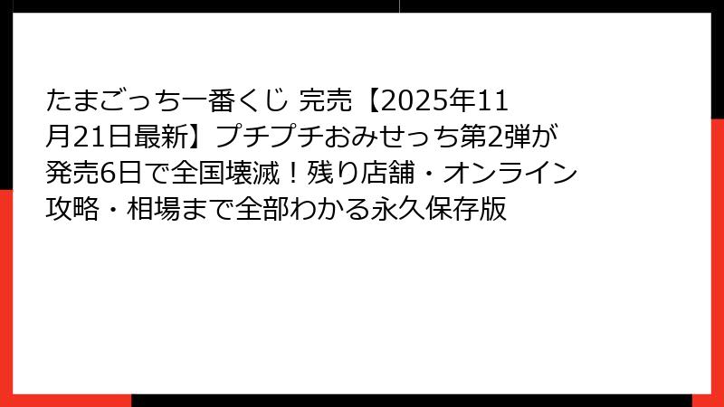 たまごっち一番くじ「プチプチおみせっち 第2弾」に関する全ての情報を、2025年11月21日18時時点で最も正確に、かつ最も詳しく総まとめした、永久保存版の記事である。