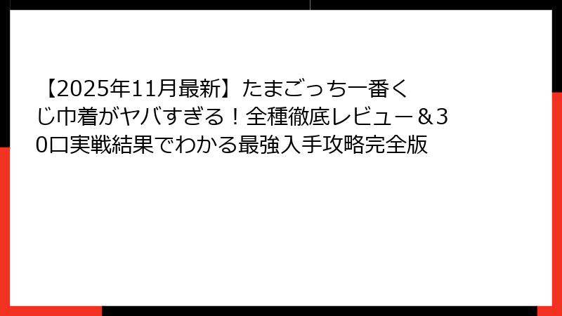 - 【結論】たまごっち一番くじ巾着は絶対買い!後悔しないための最終チェックリスト