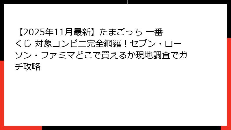 - 【2025年最新】たまごっち×サンリオキャラクターズ一番くじはどのコンビニで買える?対象店舗を完全網羅!