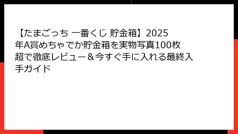 2025年11月最新「一番くじ Tamagotchi ~めちゃでかお世話貯金箱~」がなぜここまで爆発的に売れたのか