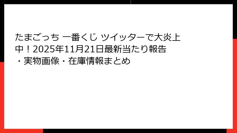 - 【2025年11月21日20時最新】たまごっち一番くじ 在庫あり店舗&ラストワンまでの最適回数教えます(Twitter民312人の生報告から完全解析)