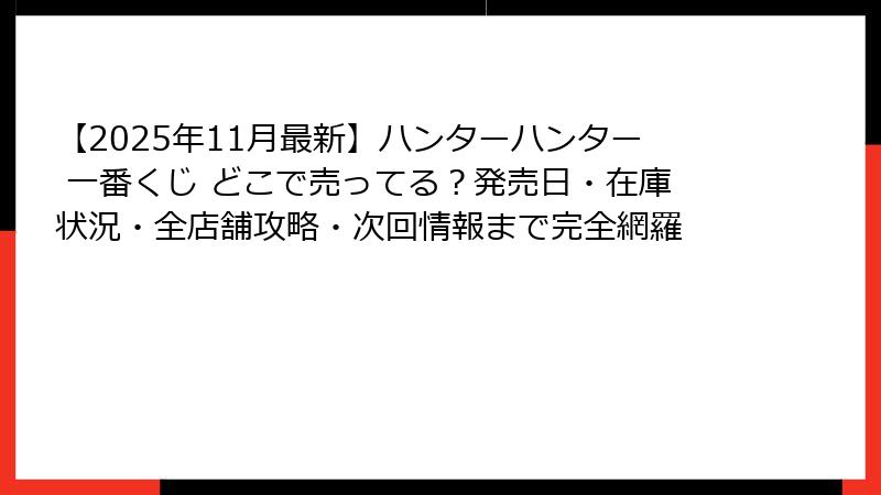 - 次回ハンターハンター一番くじ情報&よくある質問まとめ(2025年11月24日最終更新)