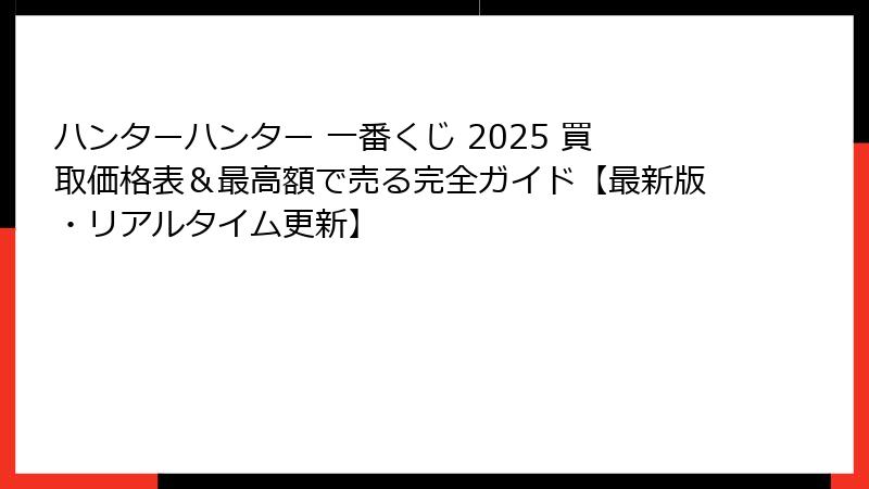 - 【リアルタイム更新】2025ハンターハンター一番くじ 現在の買取価格表(11月24日時点)