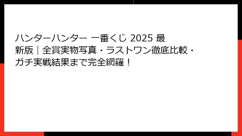 1. 【2025年最新】ハンターハンター一番くじが激アツすぎる!全ラインナップ&景品詳細まとめ