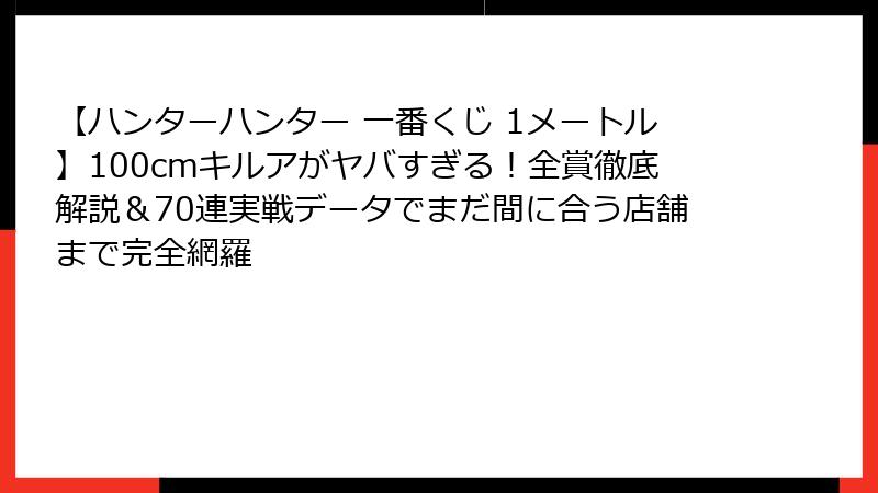 - 衝撃の1メートル超えキルア登場!2025年ハンターハンター一番くじが本気すぎる