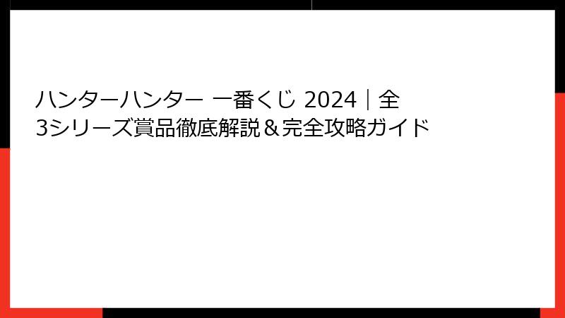 - ハンターハンター 一番くじ 2024をゲットするためのTipsとまとめ