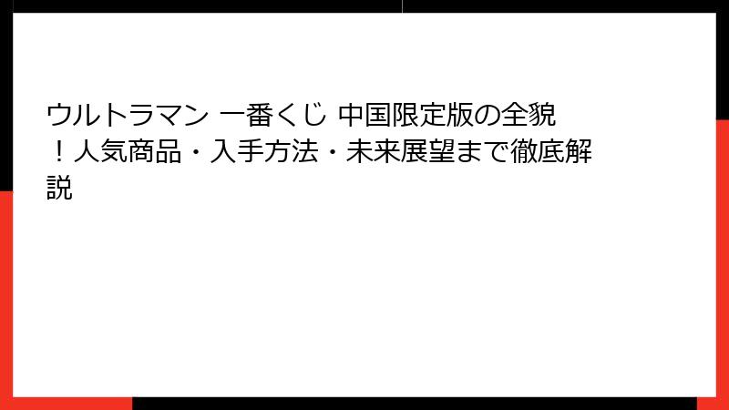中国限定ウルトラマン一番くじは、そんな市場の特性を反映した商品で、日本版とは異なる独自のラインナップが魅力です。