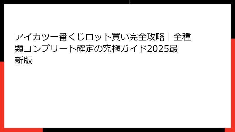 アイカツ一番くじロット買い完全攻略|全種類コンプリート確定の究極ガイド2025最新版