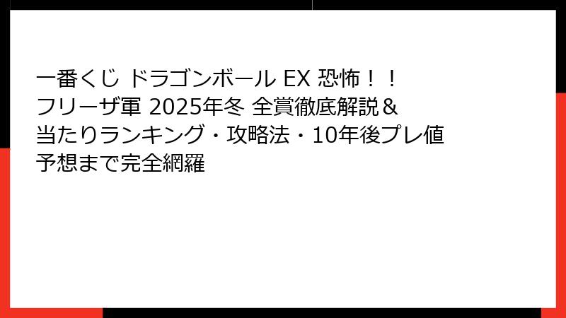 - ついにキタ!一番くじ ドラゴンボール EX 恐怖!!フリーザ軍が2025年冬に登場決定!