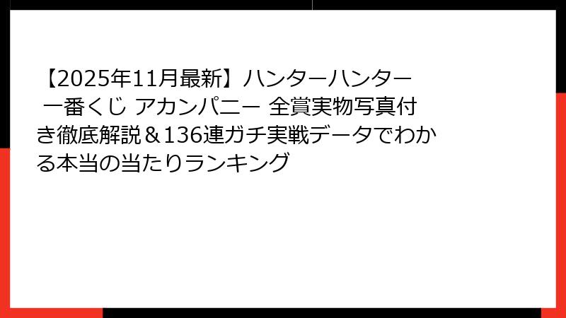 ハンターハンター好きなら絶対に損しない、史上最強クラスの一番くじ「ア・カンパニー」の全てを、今から徹底的に解剖していきます。