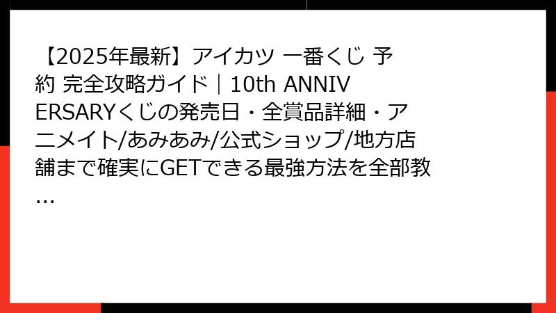 - 【確実に入手できる】アイカツ!10th一番くじ2025の予約方法12パターン全部教えます|アニメイト・ローソン・あみあみ・楽天・公式ショップ・書店まで完全攻略&0秒カート入れテクニック大公開