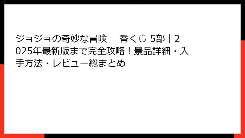 まずはシリーズの概要から始め、第5部の魅力、そして一番くじのコンセプトまでを徹底的に解説します。
