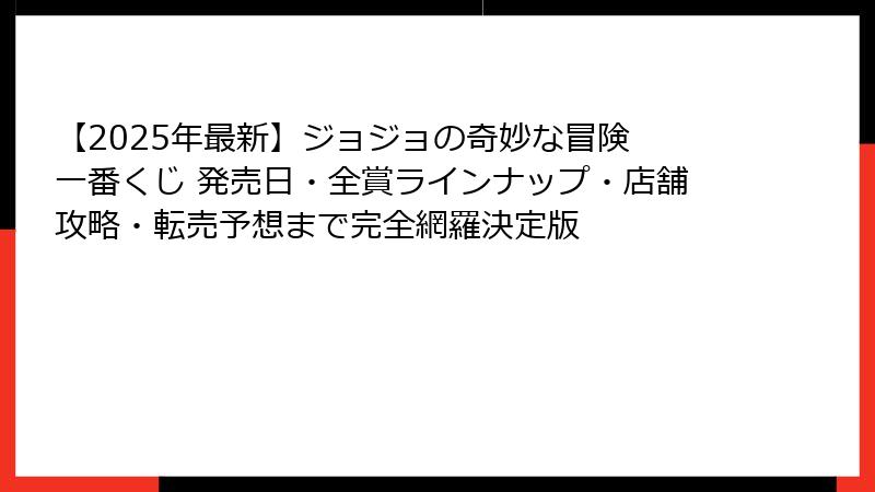 - 【2025年最新】ジョジョの奇妙な冒険 一番くじ 発売日・ラインナップ全情報まとめ