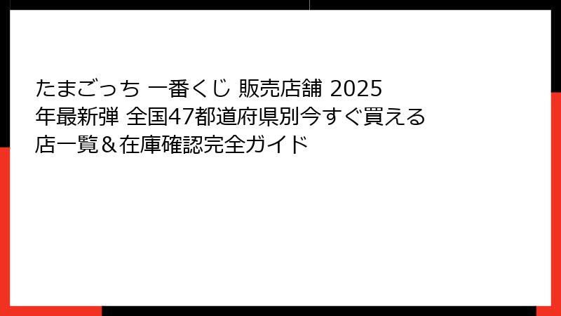 - 【最新】たまごっち×一番くじ 2025年最新弾の販売店舗一覧まとめ