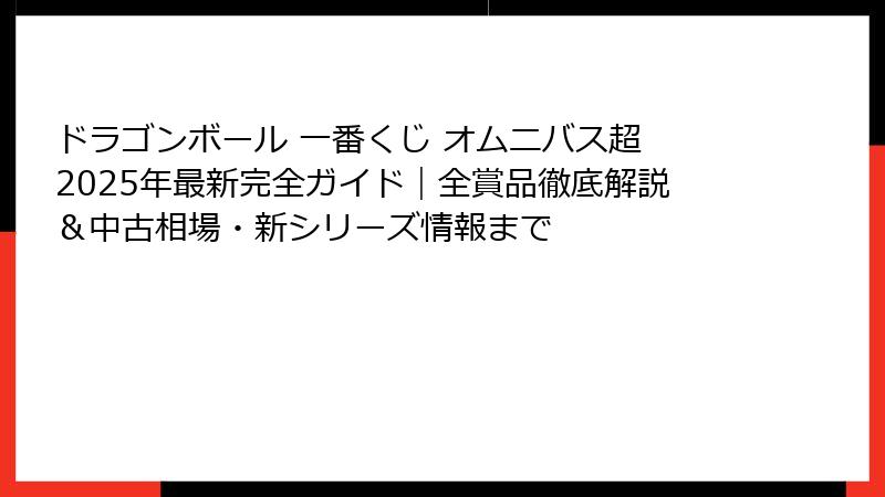 ドラゴンボール 一番くじ オムニバス超 2025年最新完全ガイド|全賞品徹底解説&中古相場・新シリーズ情報まで