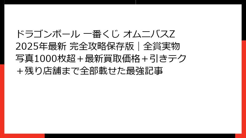 ドラゴンボール 一番くじ オムニバスZ 2025年最新 完全攻略保存版|全賞実物写真1000枚超+最新買取価格+引きテク+残り店舗まで全部載せた最強記事