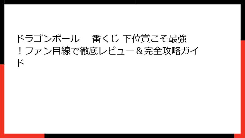 この記事では、ドラゴンボール一番くじの下位賞に焦点を当てて、基本的な知識からその魅力までを詳しく解説していきます。