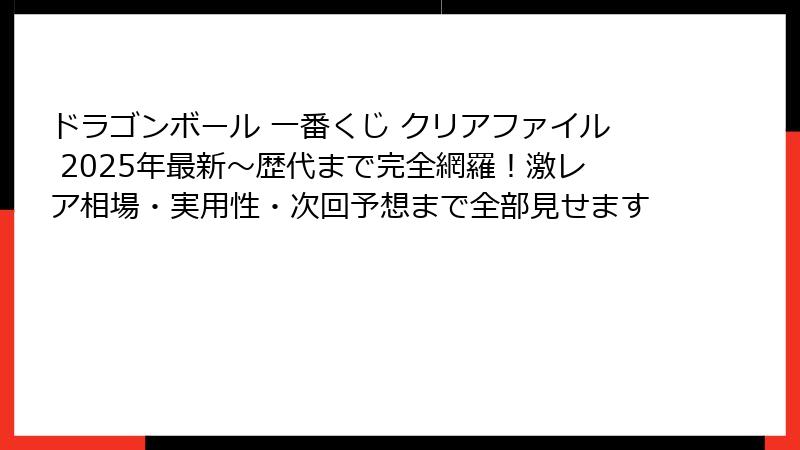 - 【2025年最新】ドラゴンボール一番くじで手に入る全クリアファイル徹底まとめ!