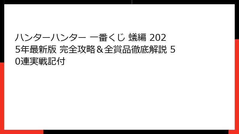 ハンターハンター 一番くじ 蟻編 2025年最新版 完全攻略&全賞品徹底解説 50連実戦記付