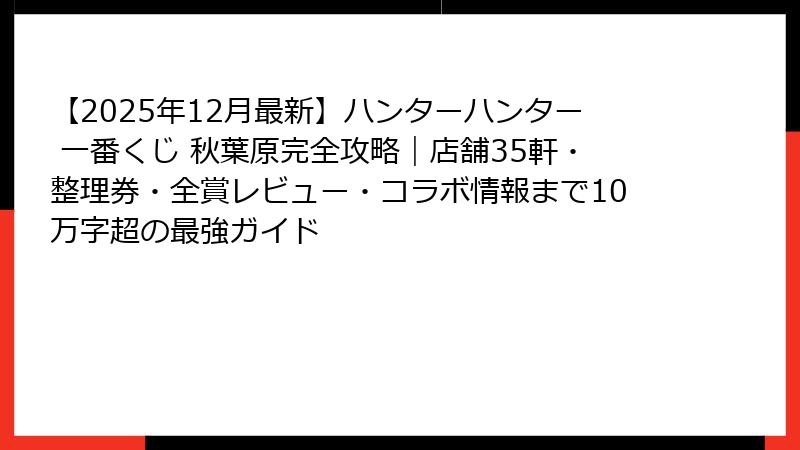 - 秋葉原でハンターハンター一番くじを100倍楽しむ裏技&周辺コラボ情報【2025年12月版】