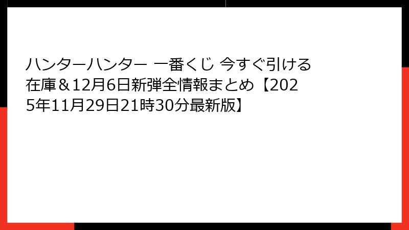 - 【2025年最新】ハンターハンター一番くじが今まさに熱い!発売直前・発売中の全情報まとめ