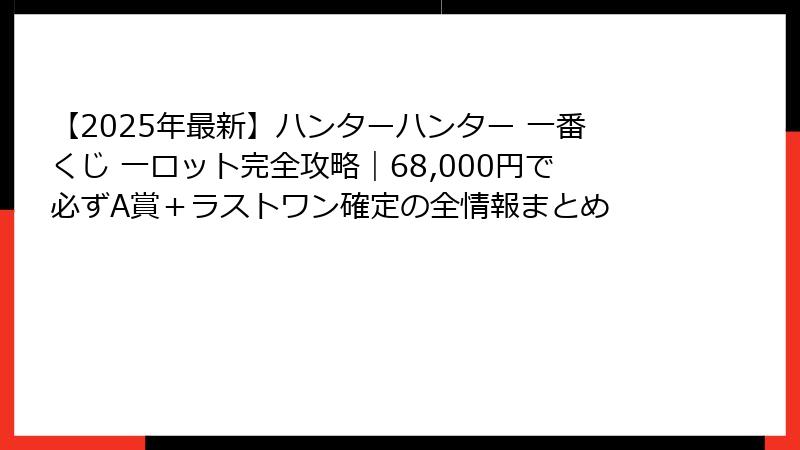 - 2025年ハンターハンター一番くじ1ロットを最安・最速で予約する方法(実績多数の店舗リスト付き)