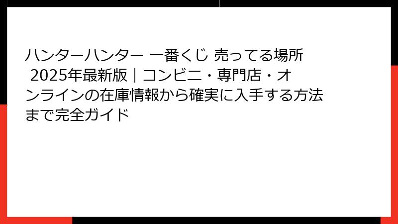 - ハンターハンター 一番くじが売ってる場所:コンビニエンスストア徹底ガイド