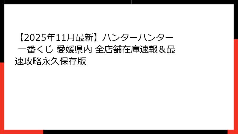 - 【2025最新】ハンターハンター一番くじが愛媛県でも絶賛発売中!ロット完売続出の超人気くじを今すぐチェック!