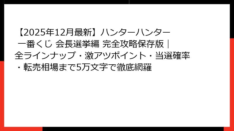 - 【2025年最新】ハンターハンター一番くじ「会長選挙編」がついに登場!衝撃の開催決定情報まとめ