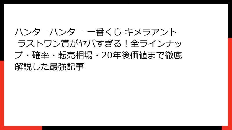 ハンターハンター 一番くじ キメラアント ラストワン賞がヤバすぎる!全ラインナップ・確率・転売相場・20年後価値まで徹底解説した最強記事
