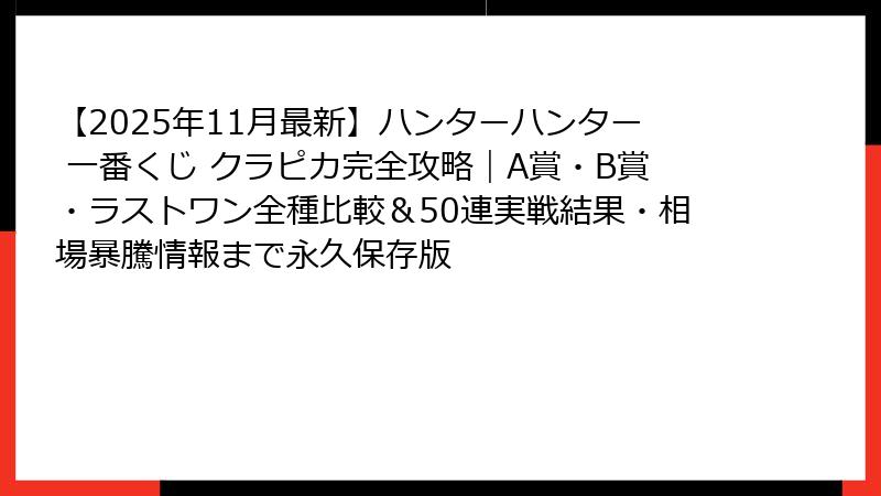 - クラピカ好きなら絶対見逃せない!次回一番くじ予想と永久保存版まとめ