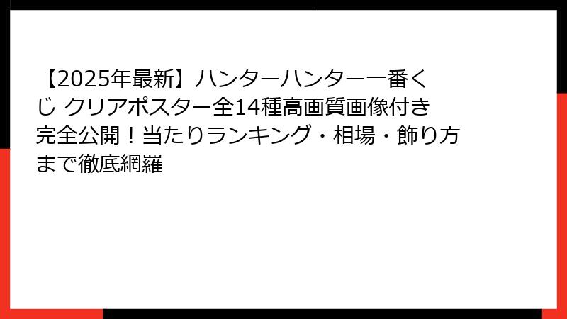 つまり、この1記事を読むだけで、「ハンターハンター一番くじ クリアポスター」に関する全ての情報が手に入る構成になっている。