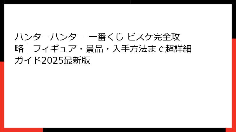 - ハンターハンター 一番くじ ビスケ景品徹底レビュー:フィギュアから小物まで全アイテム紹介