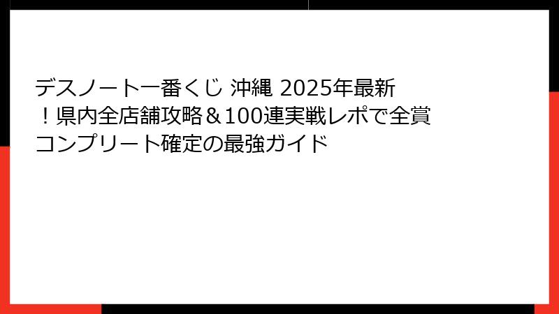デスノート一番くじ 沖縄 2025年最新!県内全店舗攻略&100連実戦レポで全賞コンプリート確定の最強ガイド