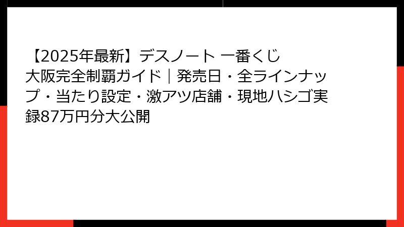 - 【大阪民必見】デスノート一番くじが2025年に奇跡の復刻決定!いつ・どこで買える?完全網羅版