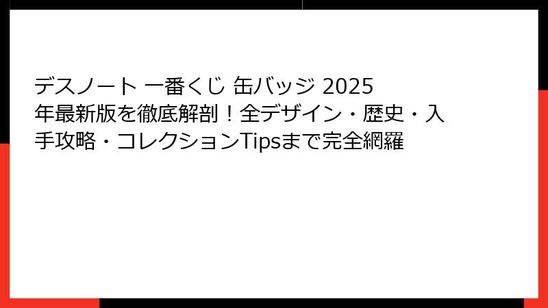 このセクションでは、一番くじの基本からデスノート 一番くじ 缶バッジの特典まで詳しく解説します。