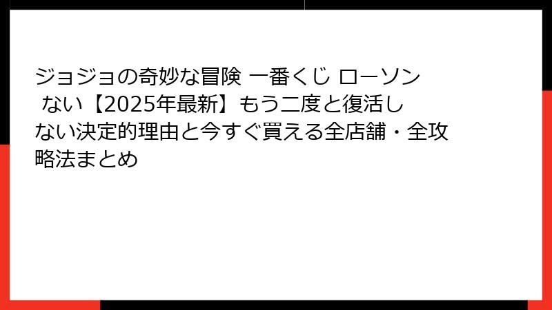 - 【2025年最新】ジョジョの奇妙な冒険 一番くじがローソンに全然ない…!みんなが同じことで検索している理由