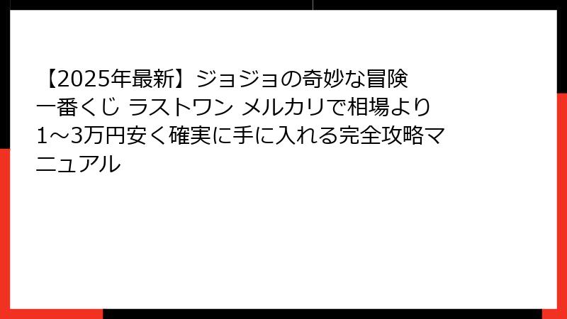 【2025年最新】ジョジョの奇妙な冒険 一番くじ「ラストワン賞」をメルカリで最安値で確実に手に入れる全手法